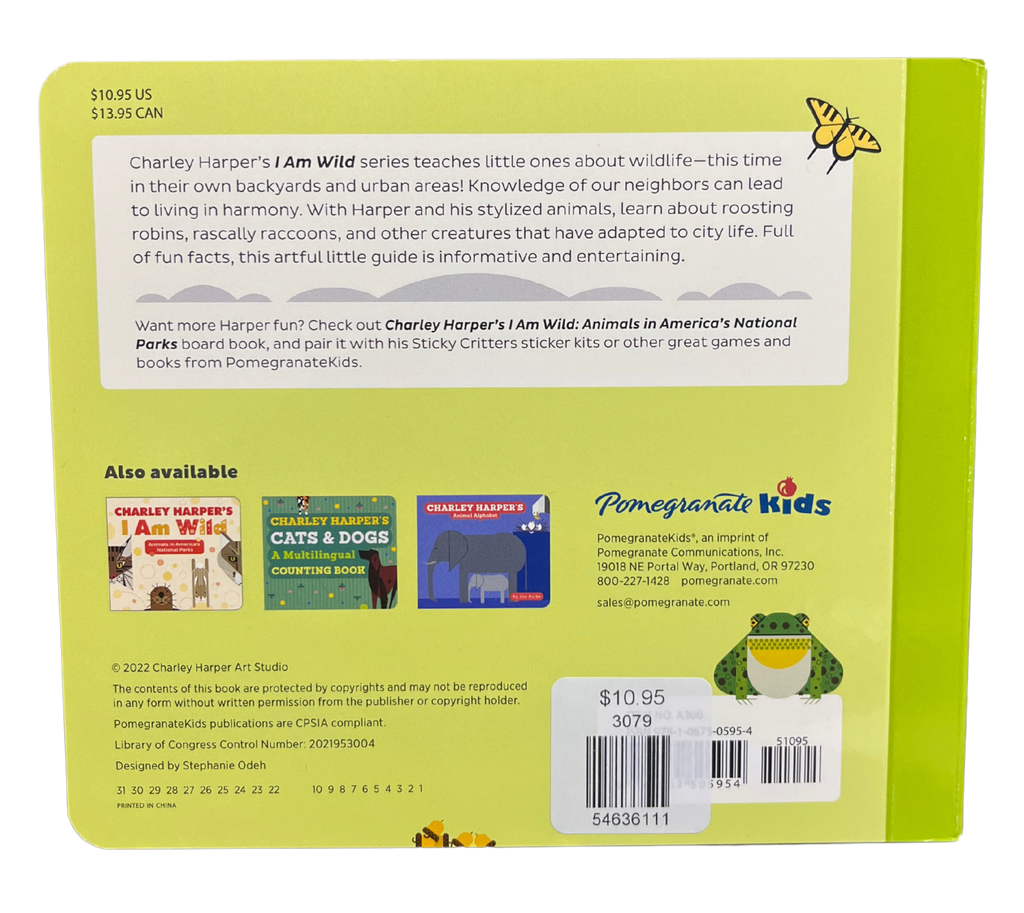 Charley Harper's I am Wild series teaches little ones about wildlife--this time in their own backyards and urban areas! Knowledge of our neighbors can lead to living in harmony. With Harper and his stylized animals, learn about roosting robins, rascally raccoons, and other creatures that have adapted to city life. Full of fun facts, this artful little guide is informative and entertaining.