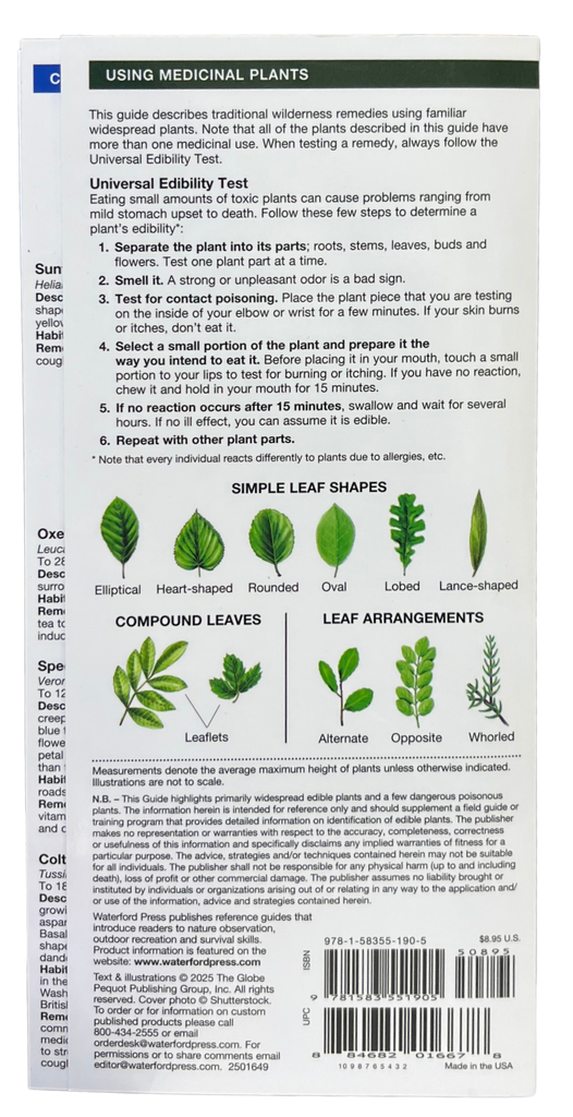 This fold out guide by Pocket Naturalist describes traditional remedies using familiar widespread plants. Note that all of the plants in this guide have more than one medicinal use.